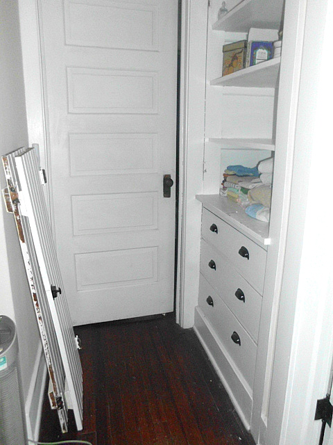 I have moved and still trying to settle in at my new house. It is very old with dark woodwork and many interesting nooks and crannies which I love. It is only 5 blocks from my last home so is still "in the neighborhood" close to my work and close to my friend John. Upstairs had a linen cupboard with 2 doors that did not close. So I removed them, keep the linens in the drawers below and now have a bookcase/display shelves, a nice update and feature.